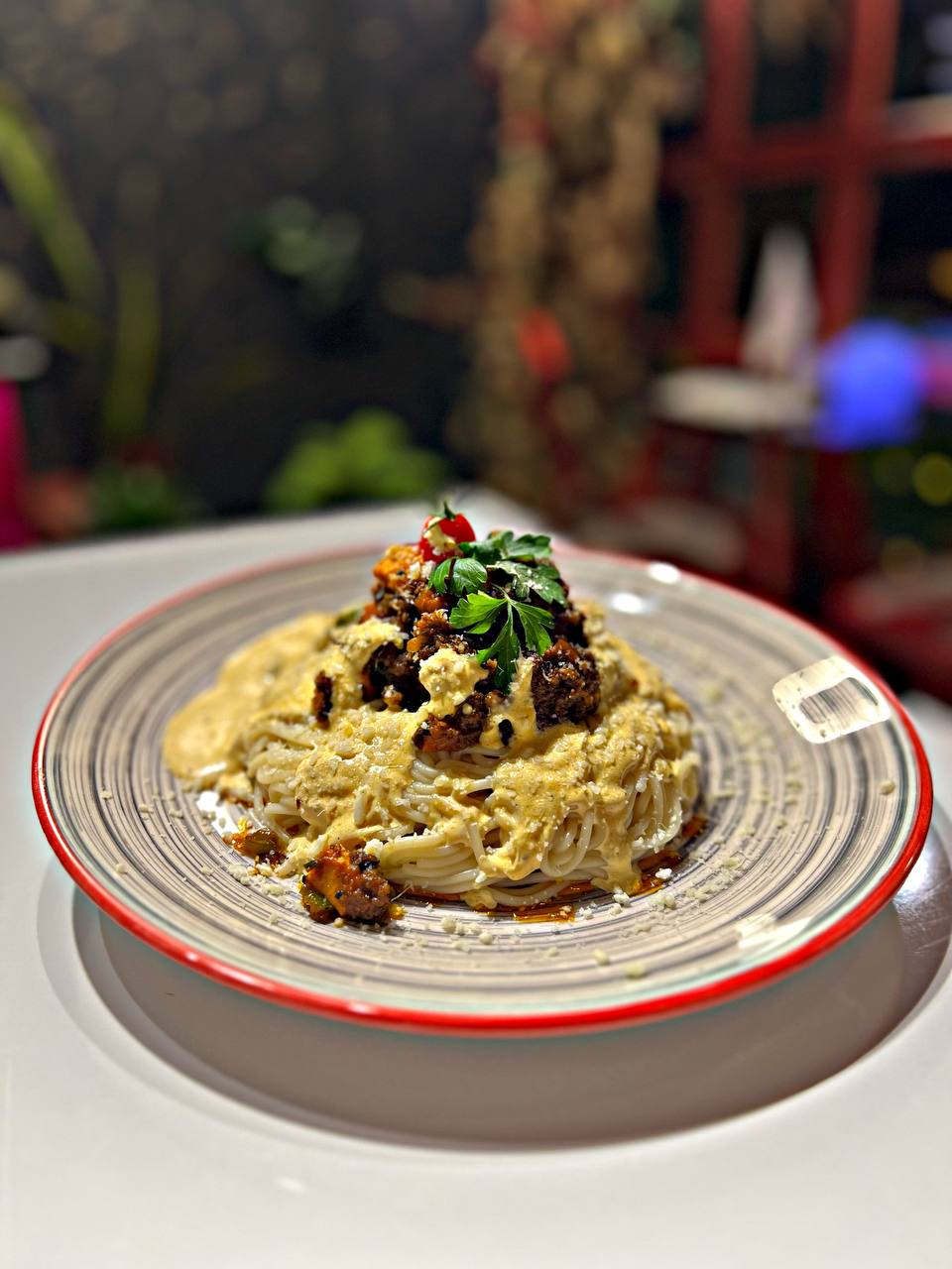 سلام و خسته نباشید. چرا رنگ پاستات انقدر روشنه؟ روی پاستا چی ریختی پنیره ایا؟